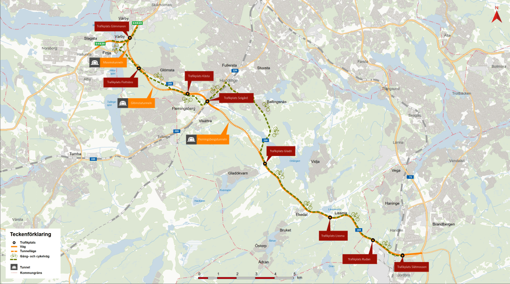Trafikverkets förslag är alltså att bygga en motorväg söder om Stockholm som man kan se på den här kartan. Tvärförbindelse Södertörn är planerad gå mellan E4/E20, vid Vårby Backe i Kungens Kurva via Flemingsberg, till väg 73 vid trafikplats Jordbro i Haninge Kommun.