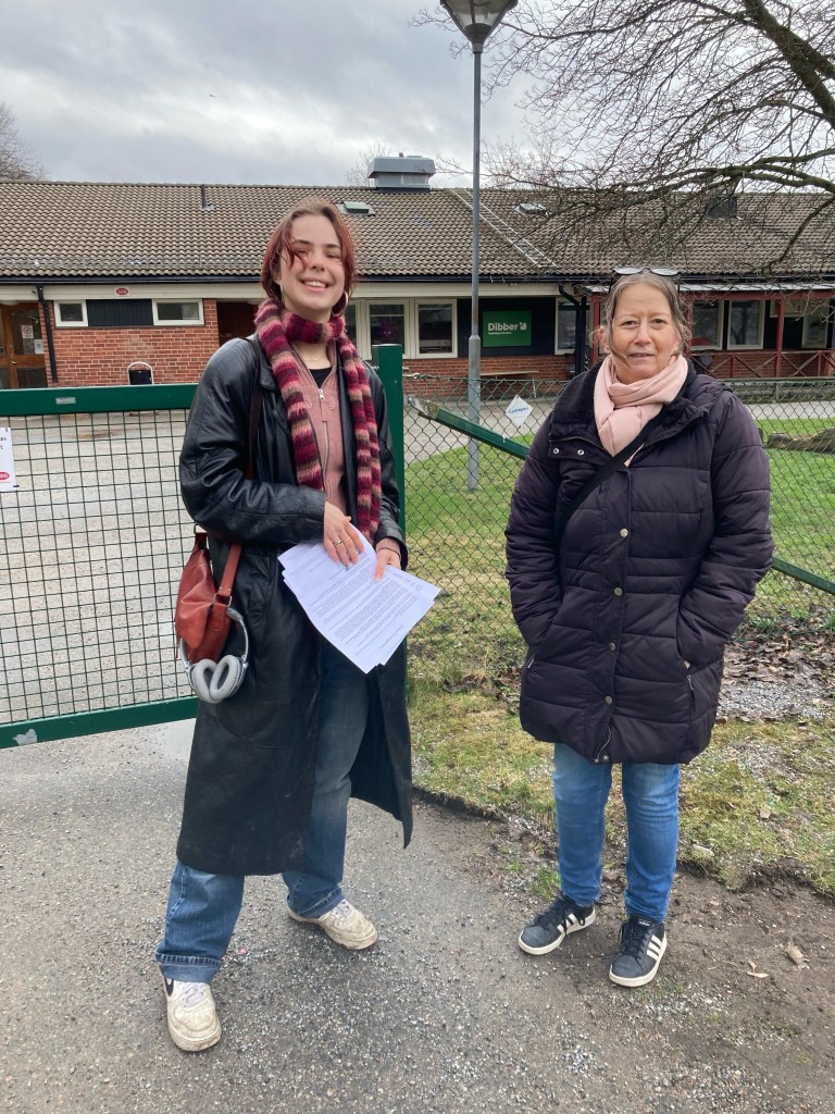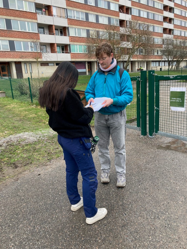 – Invånarna är så tacksamma att vi kommer hit och informerar. Otroligt att de inte fått information om hur deras boendemiljö ska förändras, säger Lise-Lott Kolessar från nätverket Tvärnit Södertörn.